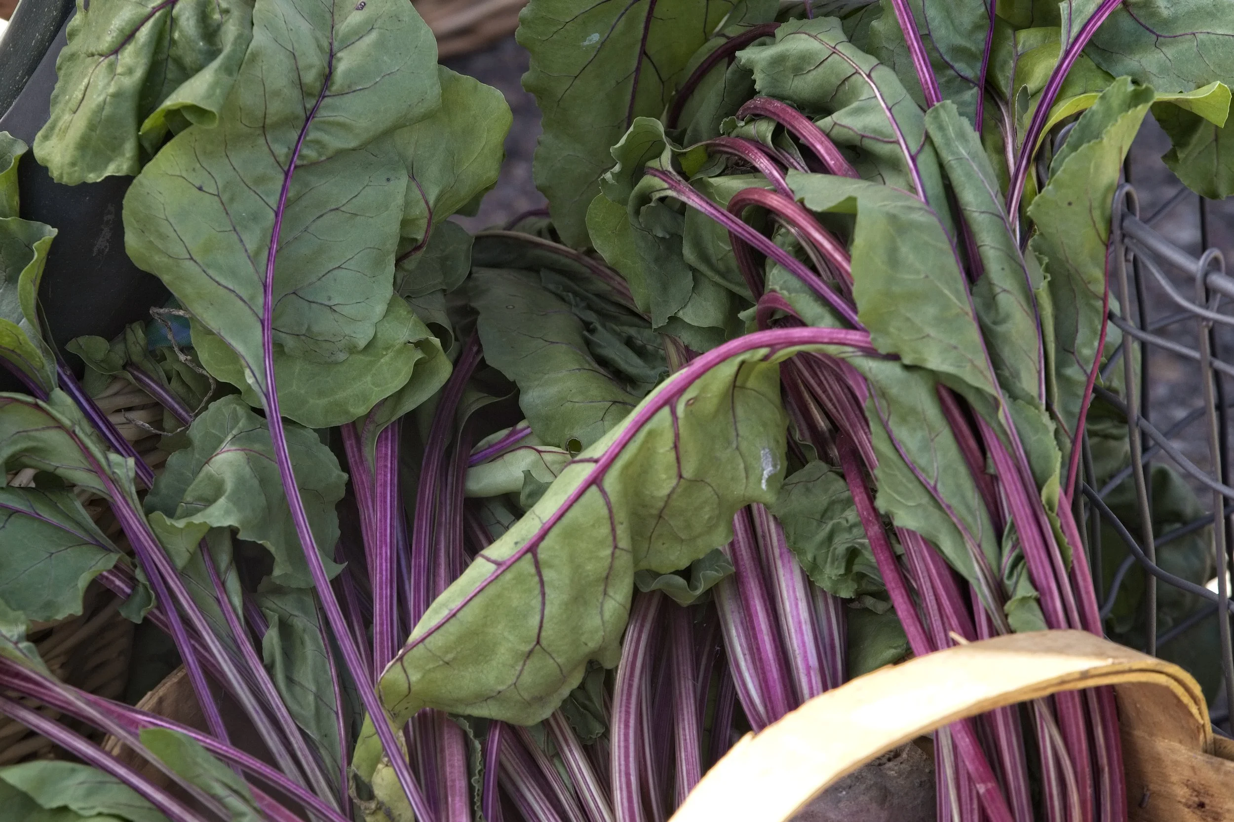 If the shorter days make me blue, the farmer's market makes me happy!! I love wandering the tables seeing all the variety that is being sold. It is so easy to "eat your colors" this time of year. These are beautiful beet leaves, that I have used to make pesto at times. Yum...