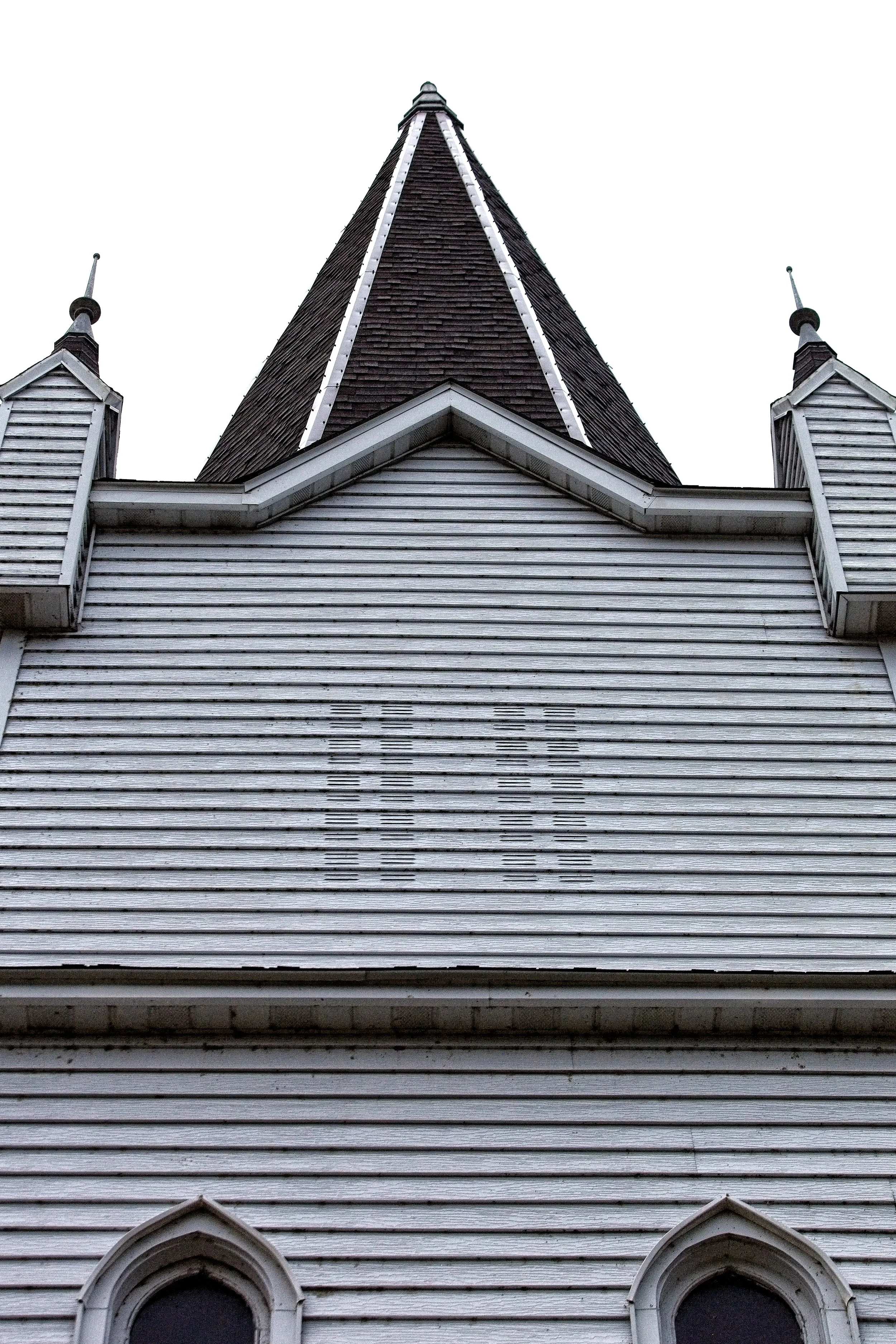 The Standing Rock Lutheran Church in Fort Ransom stands tall against the grey and rainy sky.