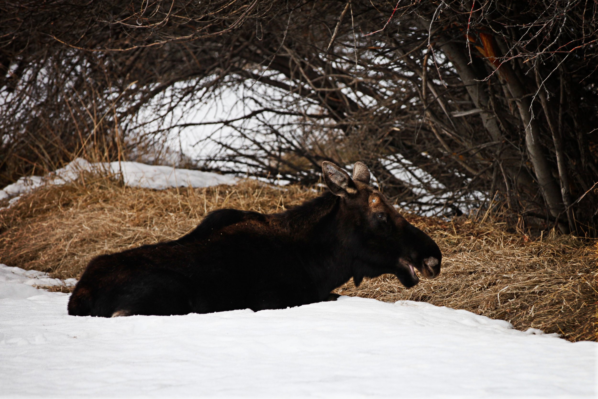 For two days I have peered endlessly at the mountainside and dense forest in hopes to catch a glimpse of a big horn sheep, a bear, or a moose. The deer have been plentiful, 5 feet outside my window, but they aren't what I longed to see.