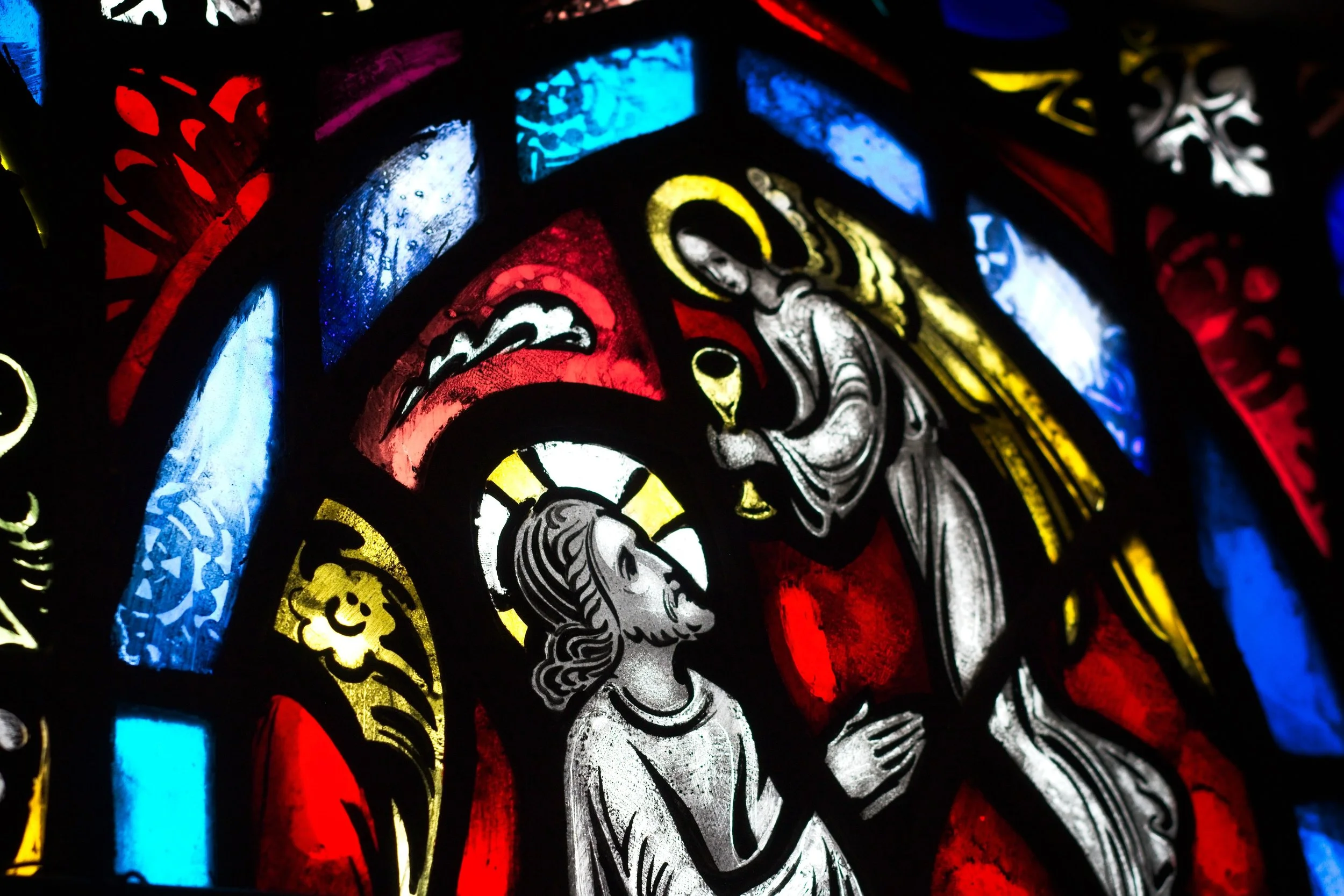 Within the beautiful stained glass windows that line both sides of the main sanctuary lies a little secret. The windows date back to 1939, to a different time of craftsmanship and detail. In the window that shows Jesus at his darkest moment, in the Garden of Gethsemane (Luke 22:43) when an Angel appeared and strengthen him.... there it is.