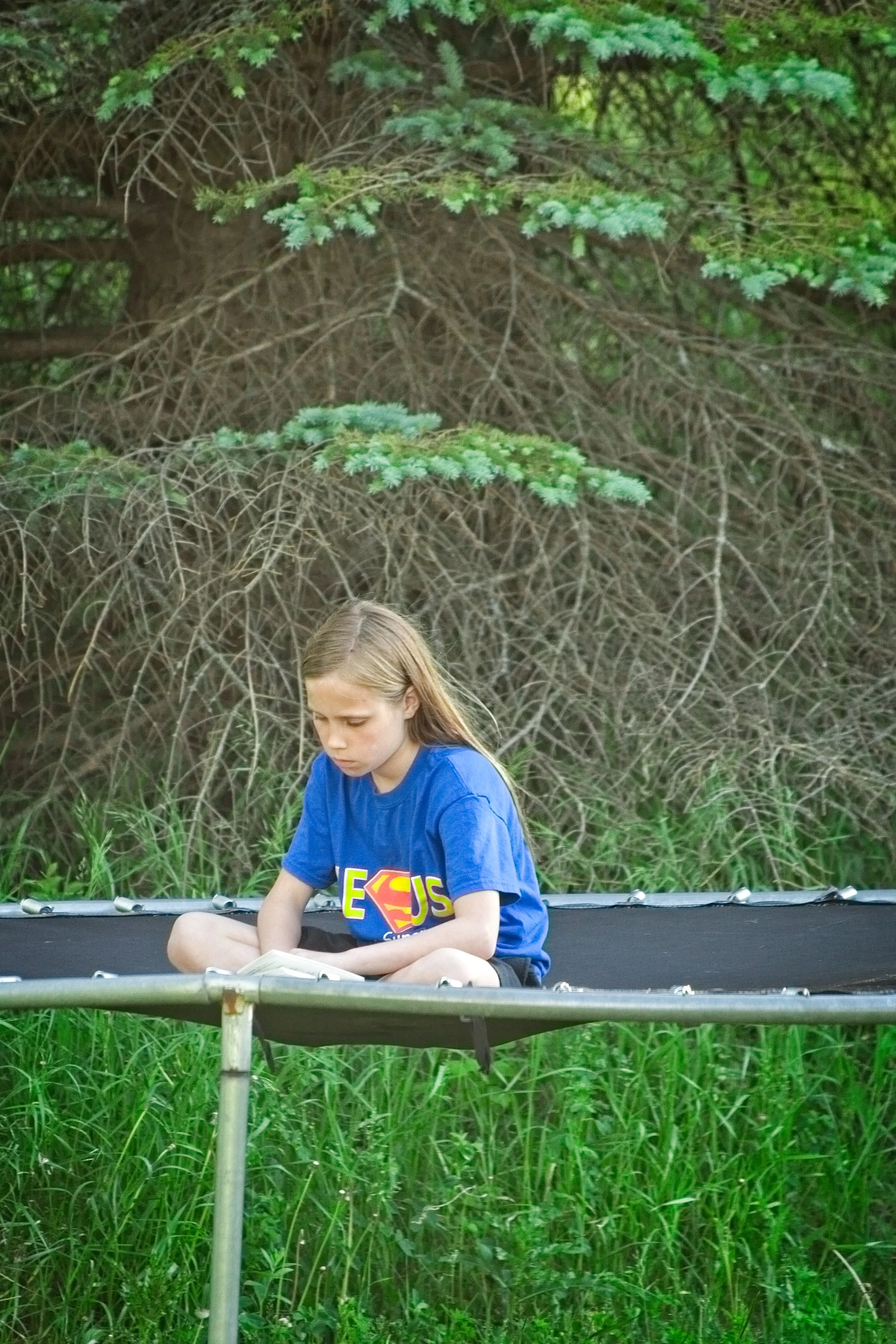The lazy unstructured days of summer look like this, around here. I looked out the window to see her reading on the tramp, her brother climbing all over the swing-set. We intentionally don't have a lot planned this summer. It is a time to rest and just be, for them and for us.
