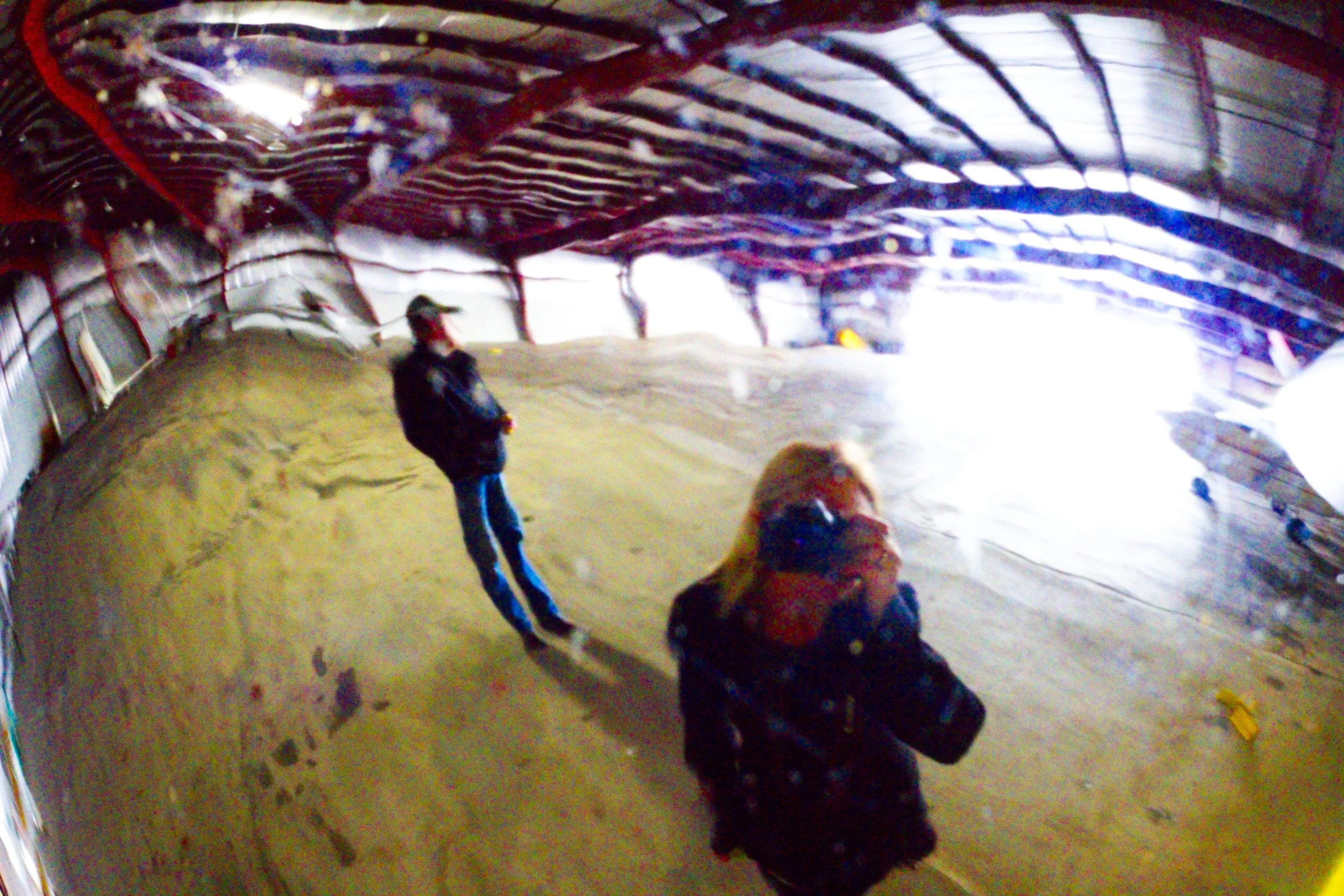 We are reflected in the spinner of an airplane. (I thought it was called a nose cone, but was quickly corrected...)